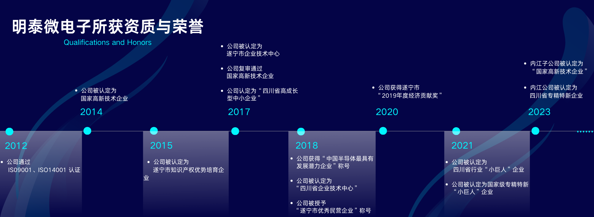 我司成立于2010年,于2014年被認定為國家高新技術(shù)企業(yè)、十余年間陸續(xù)獲評四川省企業(yè)技術(shù)中心、四川省高成長型中小企業(yè)、行業(yè)“小巨人”企業(yè)、知識產(chǎn)權(quán)培育優(yōu)勢企業(yè)、優(yōu)秀民營企業(yè)、經(jīng)濟發(fā)展貢獻獎等多項榮譽稱號。2021年9月被國家工業(yè)和信息化部認定為國家專精特新“小巨人”企業(yè)